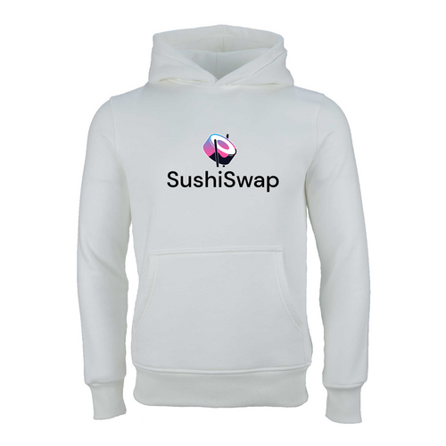 Sushiswap Logolu Beyaz Hoodie, %70 pamuk %30 polyesterden üretilmiştir.